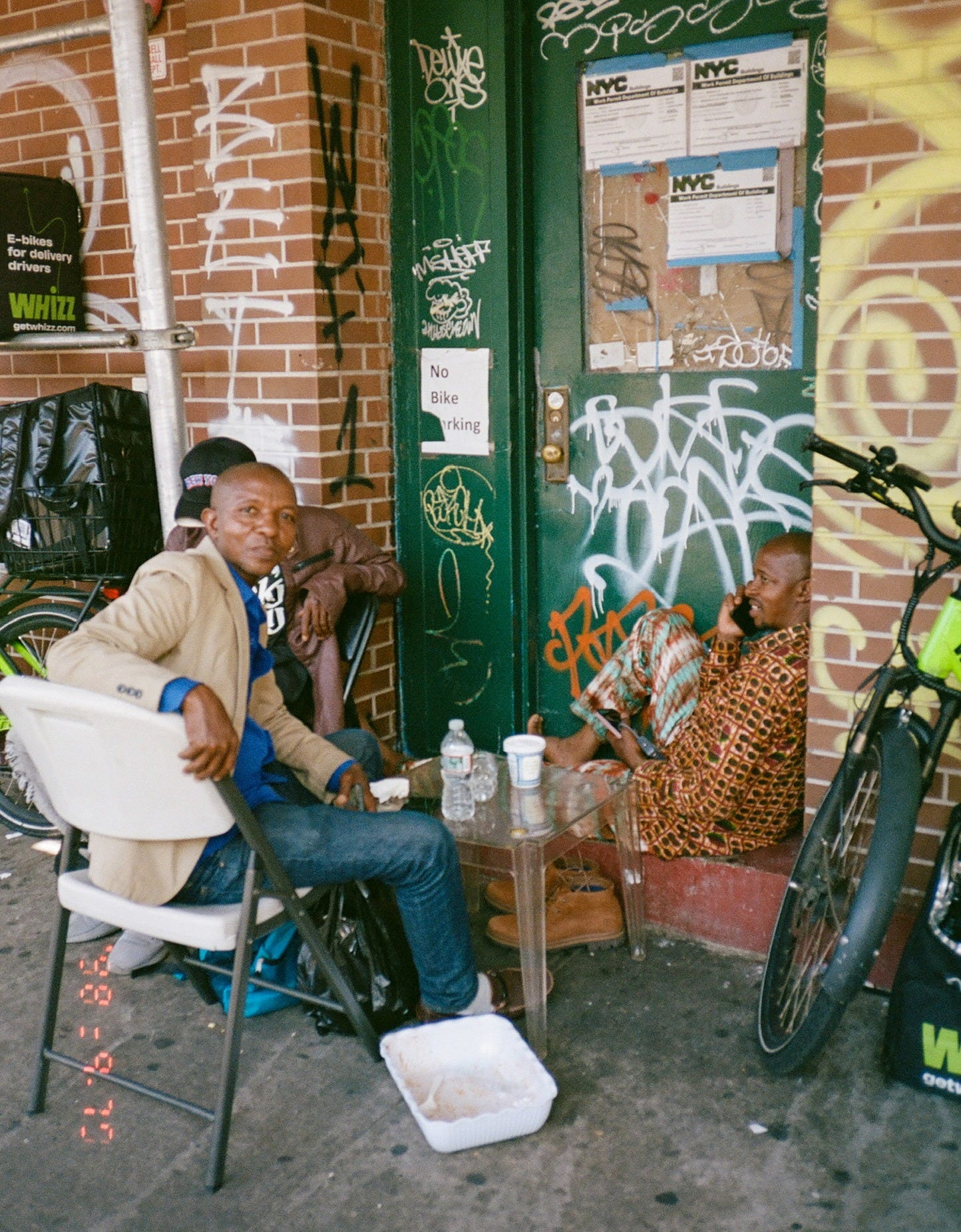 If you live in New York, I would think (hope?) that the tremendous cultural vibe shifts from block to block are one of the reasons you choose to pay exorbitant rent prices for modest apartments. If you walked the twelve miles from Bowling Green to Inwood—or some proximate version of that mandatory tip-to-tip journey—it’s stunning and bewildering to experience the vast spectrum of cultures, communities, and architecture we’ve managed to pack into this relatively small cosmopolitan. East 11th Street now makes up part of that story: a colorful refuge where migrants, many from West Africa, can rest, socialize, and commune in the spare moments when they’re not rushing to deliver your $18 salad wrap.